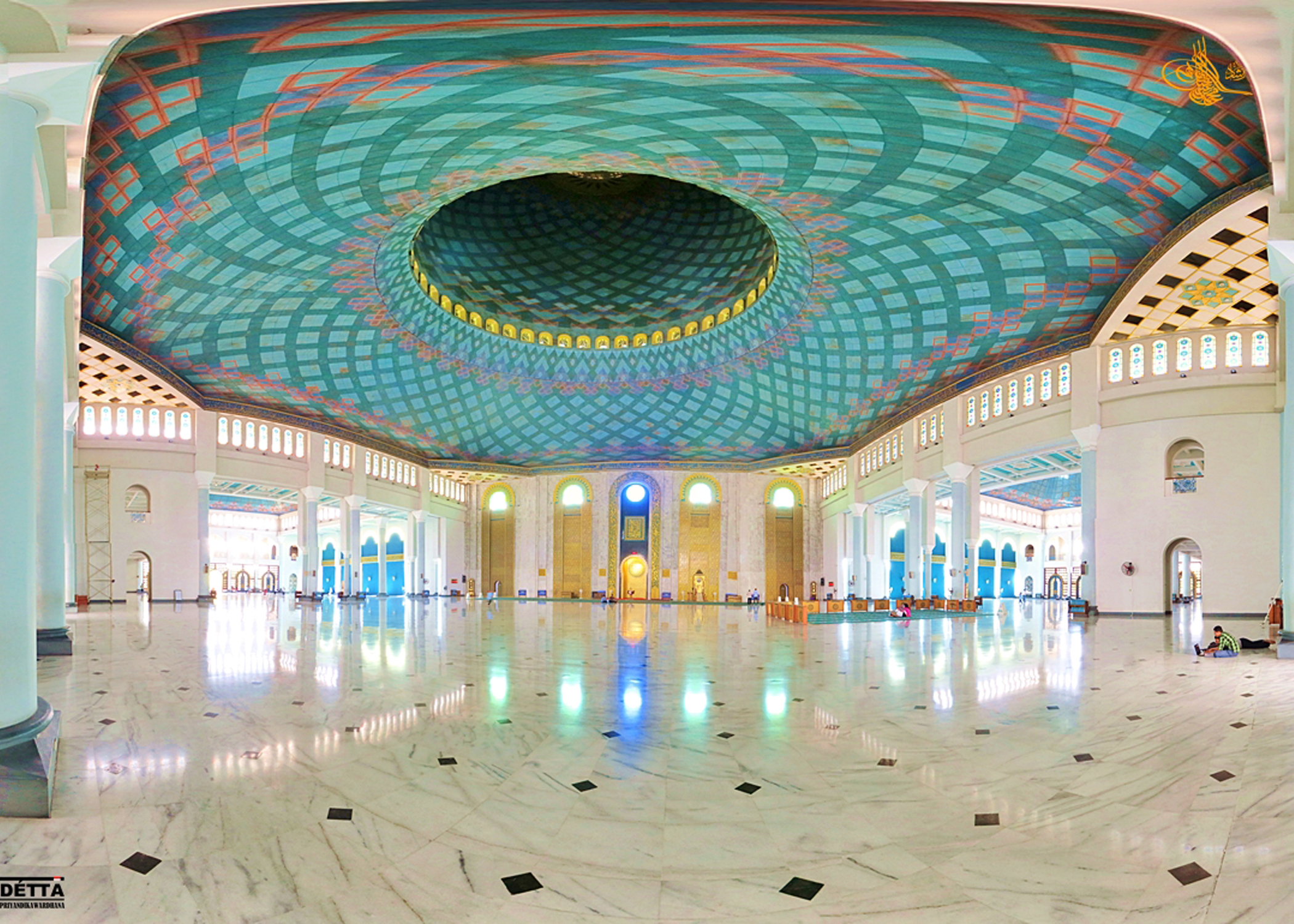 On November 10, 2000, inauguration was held by the President of Indonesia, KH. Abdurrahman Wahid. In terms of area, the building and supporting facilities combined are 22,300 square meters wide. The building has length of 147 meters and width of 128 meters. The roof consists of a large dominating dome supported by four small domes and a minaret. The uniqueness of this dome is in its shape which almost resembles a half egg with 1.5 layers which has a height of around 27 meters.