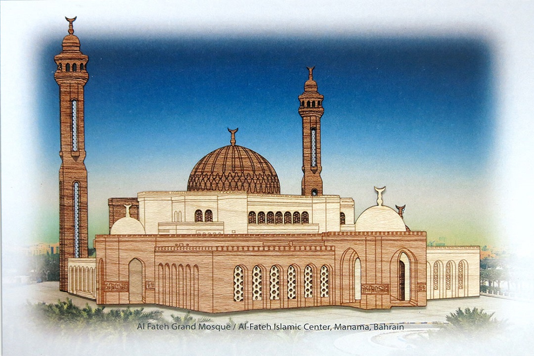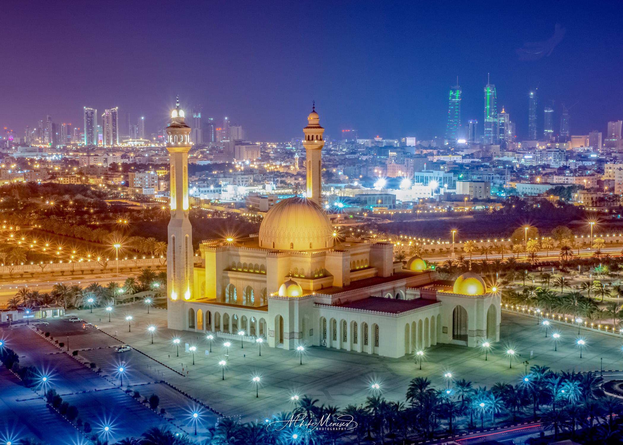It is located next to the Al Fateh Highway in Juffair, which is a suburban neighborhood of Manama. The huge dome built on top of the Al-Fateh Mosque is constructed entirely of fibreglass. Weighing over 60 Tons, the dome is currently the world’s largest fiberglass dome. The marble used in the floors is Italian and the chandelier is from Austria. The doors are made of teak wood from India. Throughout the mosque is Kufic calligraphy.