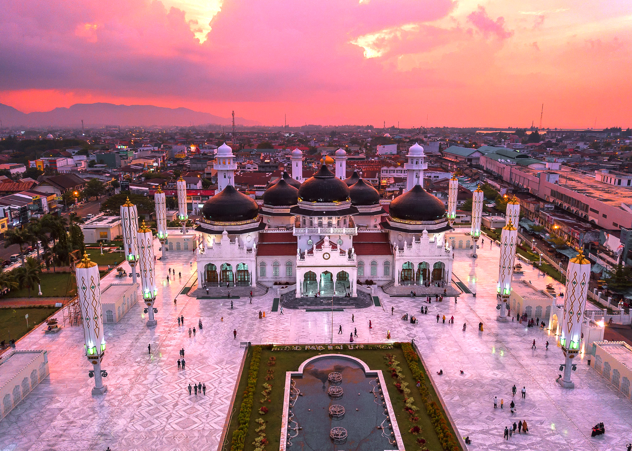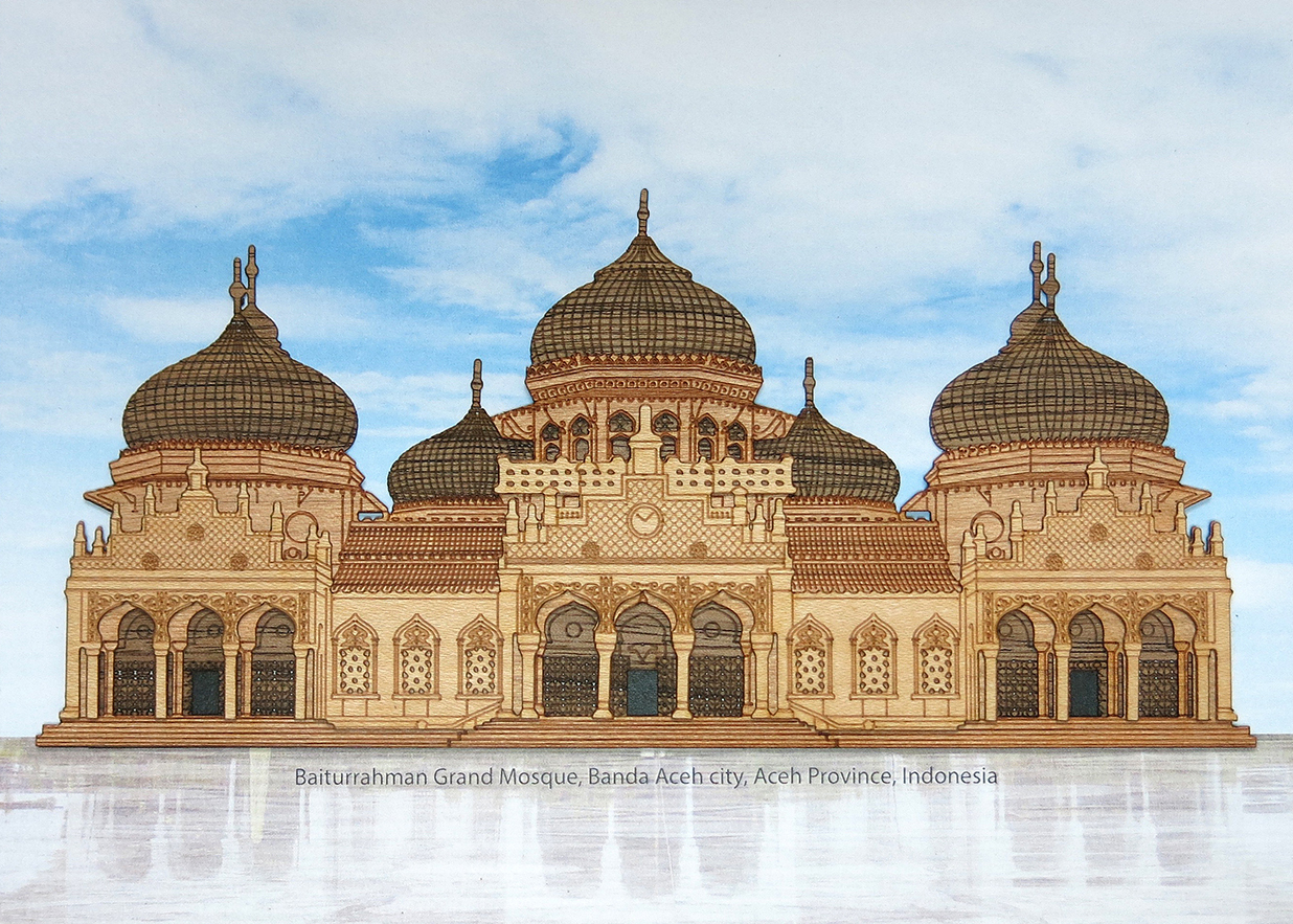 Baiturrahman Grand Mosque is located in the center of Banda Aceh city, Aceh Province, Indonesia. The mosque is a landmark of Banda Aceh and has survived the 2004 Indian Ocean tsunami. The original Masjid Raya (“Grand Mosque”) was built in 1612 during the reign of Sultan Iskandar Muda. Some say the original mosque was built even earlier in 1292 by Sultan Alaidin Mahmudsyah. When the Colonial administration of the Dutch East Indies attacked the Kraton During the First Aceh Expedition on 10 April 1873, the Acehnese attacked the KNIL from the Baiturrahman Grand Mosque. From some flares shot onto the thatched roof, the mosque caught fire.