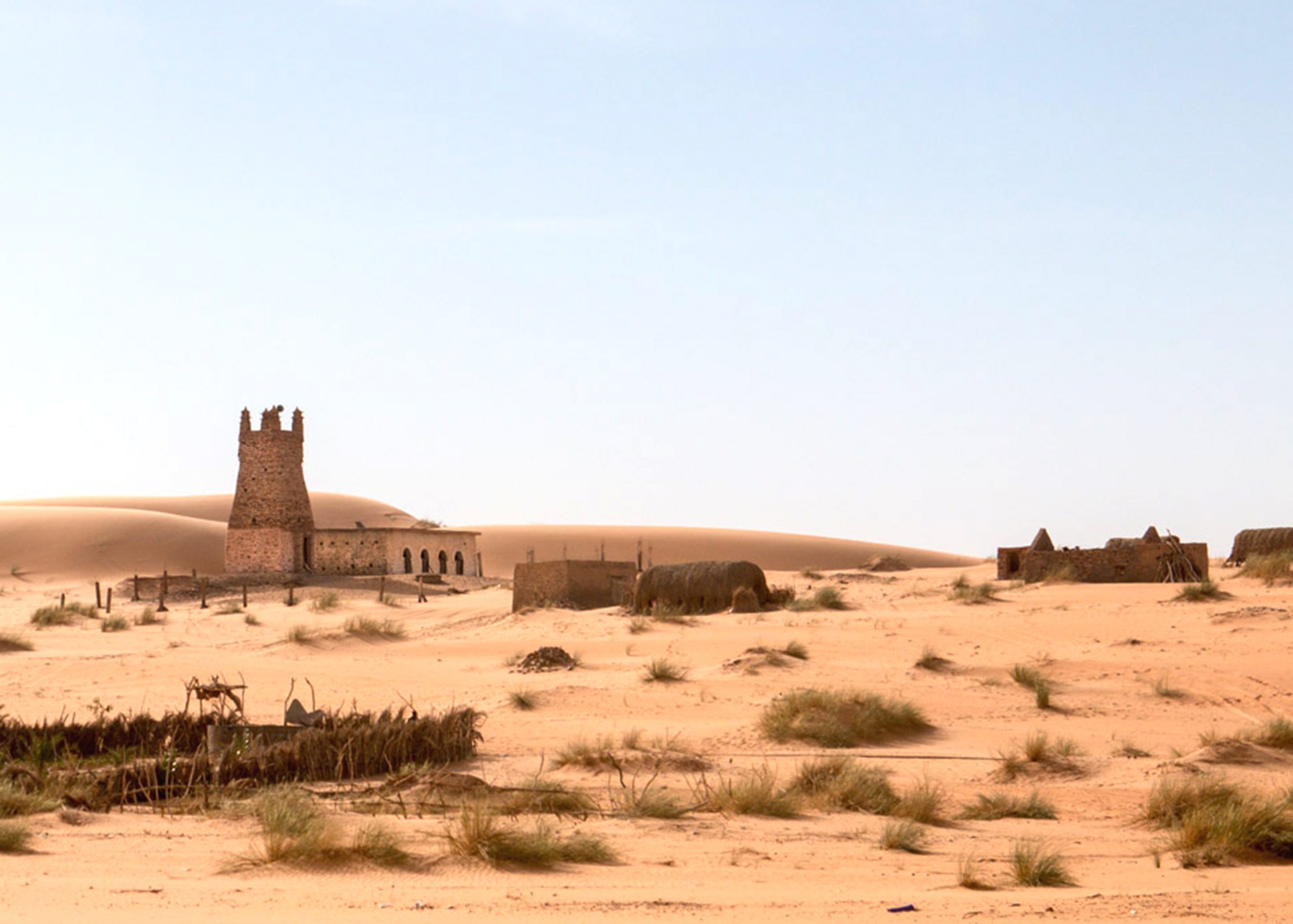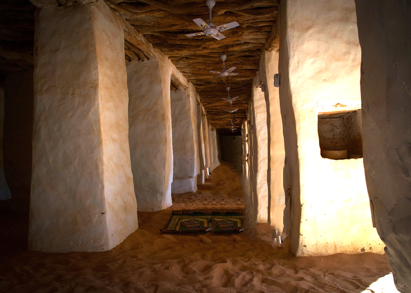 Among its most distinctive characteristics are its spare, unmortared, split stone masonry, its square minaret tower, and its conscious lack of adornment, keeping with the strict Malikite beliefs of the city’s founders. The mosque and its minaret are popularly considered the national emblem of the Islamic Republic of Mauritania. The mosque was restored through a UNESCO effort, but it, along with the city itself, continues to be threatened by intense desertification.