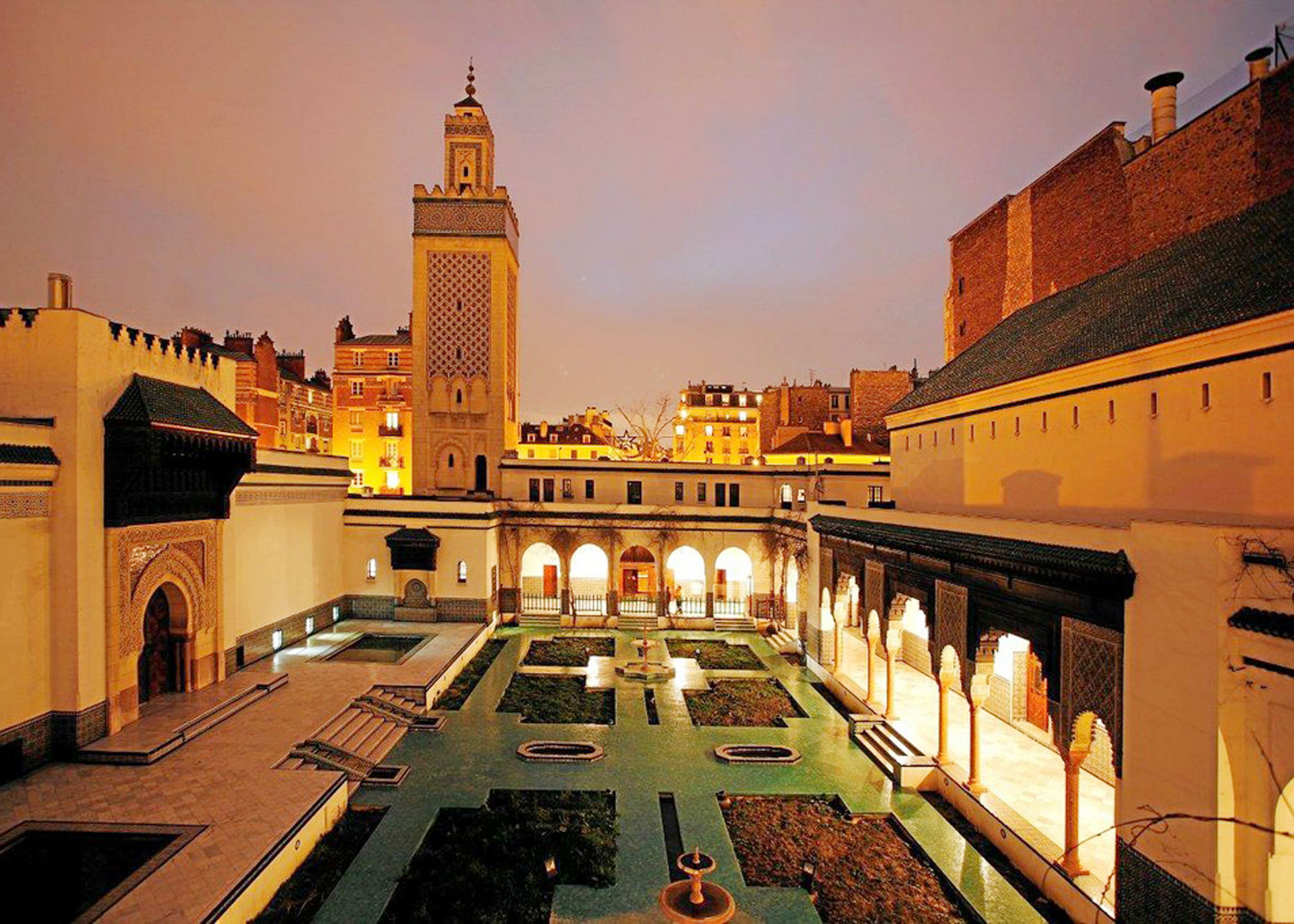 The Grand Mosque of Paris also known as the Great Mosque of Paris or simply the Paris Mosque, is located in the 5th arrondissement and is one of the largest mosques in France. There are prayer rooms, an outdoor garden, a small library, a gift shop, along with a cafe and restaurant. In all the mosque plays an important role in promoting the visibility of Islam and Muslims in France.