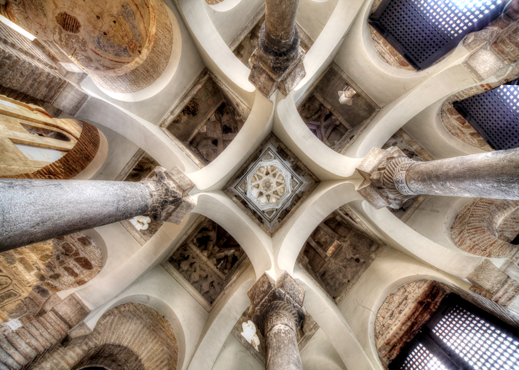 The central vault is higher than the other ones and acts as a cupola for the structure. Each vault employs the use of ribs to create the designs that make them unique. Each of them follows the basic ideas of Islamic design. The building is constructed of brick and small stones. These techniques are a reflection of both the local building tradition as well as the influence from the caliphate in Córdoba. The building is constructed of brick and small stones. These techniques are a reflection of both the local building tradition as well as the influence from the caliphate in Córdoba.