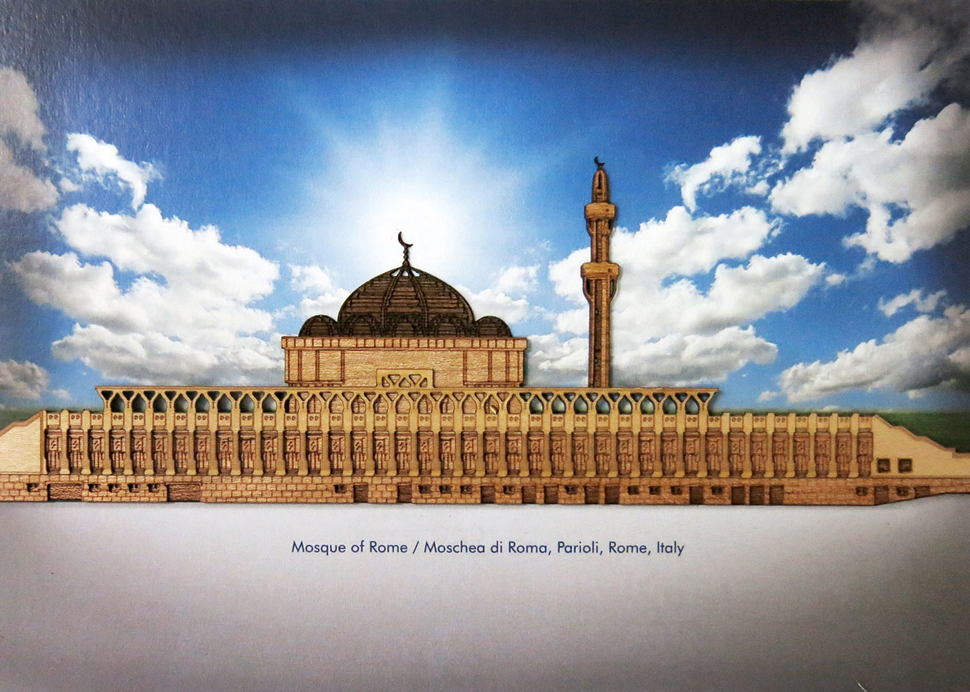 The Mosque of Rome situated in Parioli, Rome, Italy, is the largest mosque in the western world in terms of land area. It has an area of 30,000 square meter. In addition to being a meeting place for religious activities, it provides cultural and social services variously connecting Muslims together. It also holds teachings, wedding ceremonies, funeral services, exegesis, exhibitions, conventions, and other events. The mosque was jointly founded by the exiled Prince Muhammad Hasan of Afghanistan and his wife, Princess Razia and was financed by Faisal of Saudi Arabia, head of the Saudi royal family and Custodian of the Two Holy Mosques as well as by some other states of the Muslim world, including Bangladesh ruled by President Hussain Muhammad Ershad. The project was designed and directed by Paolo Portoghesi, Vittorio Gigliotti and Sami Mousawi. The opening ceremony was led by Pope John Paul II. Its planning took more than ten years: the Roman City Council donated the land in 1974, but the first stone was laid only in 1984, in the presence of then President of the Italian Republic Sandro Pertini, with its inauguration on 21 June 1995. The structure is intended to be integrated into the surrounding green area, with a mix of modern structural design and omnipresent curves.