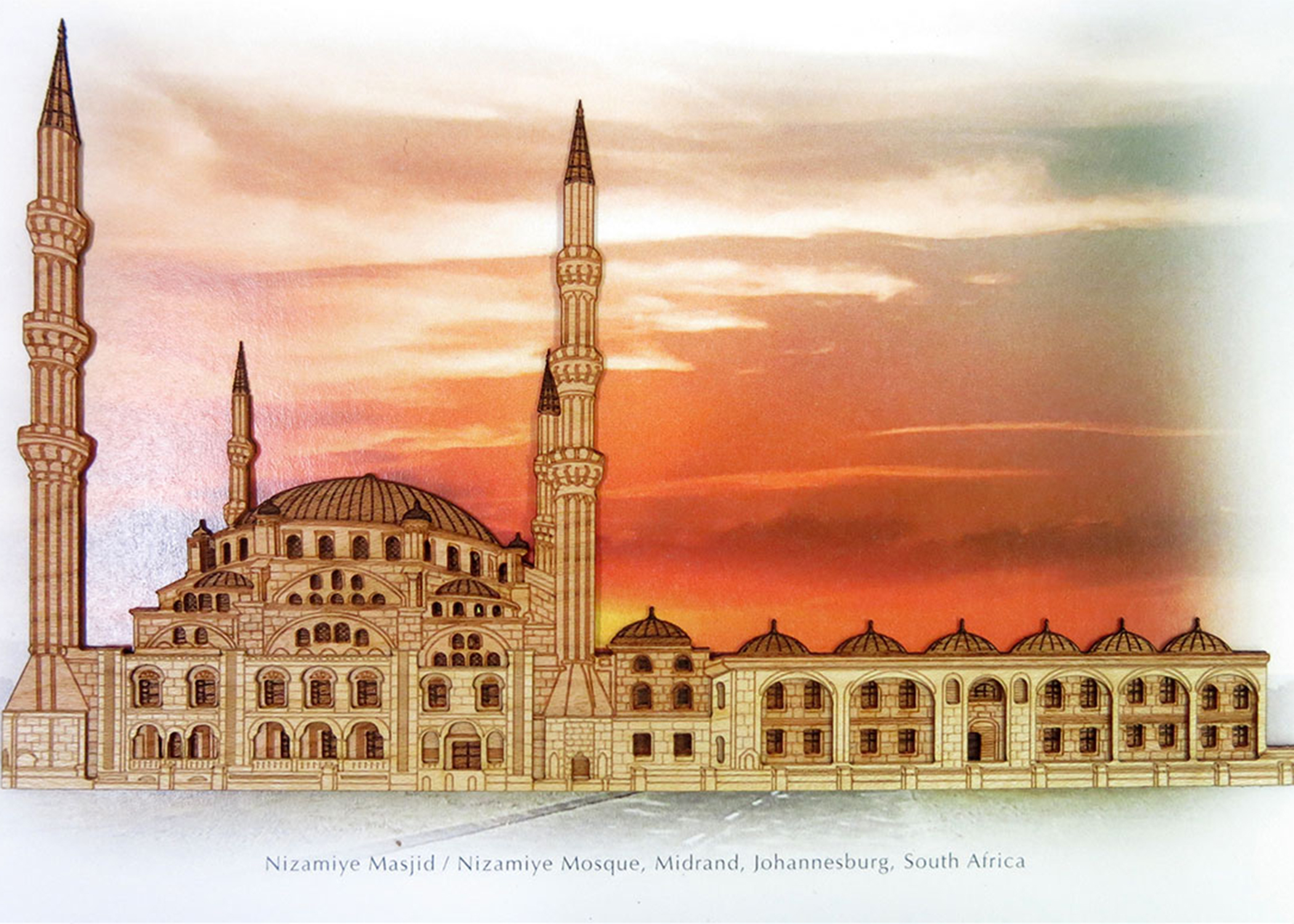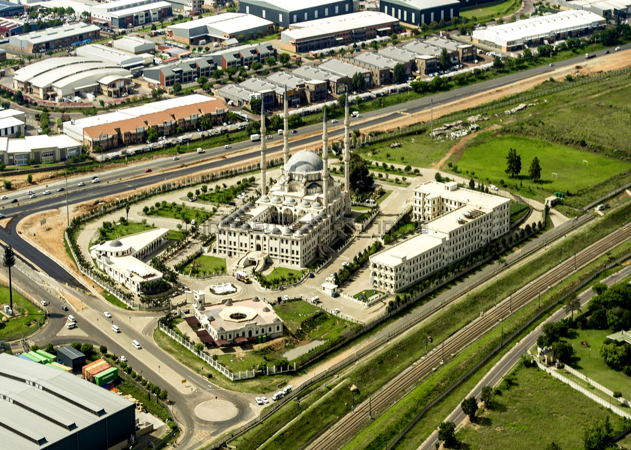 Nizamiye Masjid, often called the Nizamiye Mosque, is a mosque situated in the city of Midrand, City of Johannesburg Metropolitan Municipality, South Africa. It is often stated to be the biggest mosque in the Southern Hemisphere, occupying less than two-thirds of a hectare in 10 hectares of land. The plans for the mosque were originally designed in Turkey, but a South African architect adapted the design to South African building standards. Construction began in October 2009 and was completed in 2012. The mosque has a main dome that is 31 m high and 24 m wide that is covered in 48 tons of lead. There are an additional 4 half domes and 21 smaller domes.