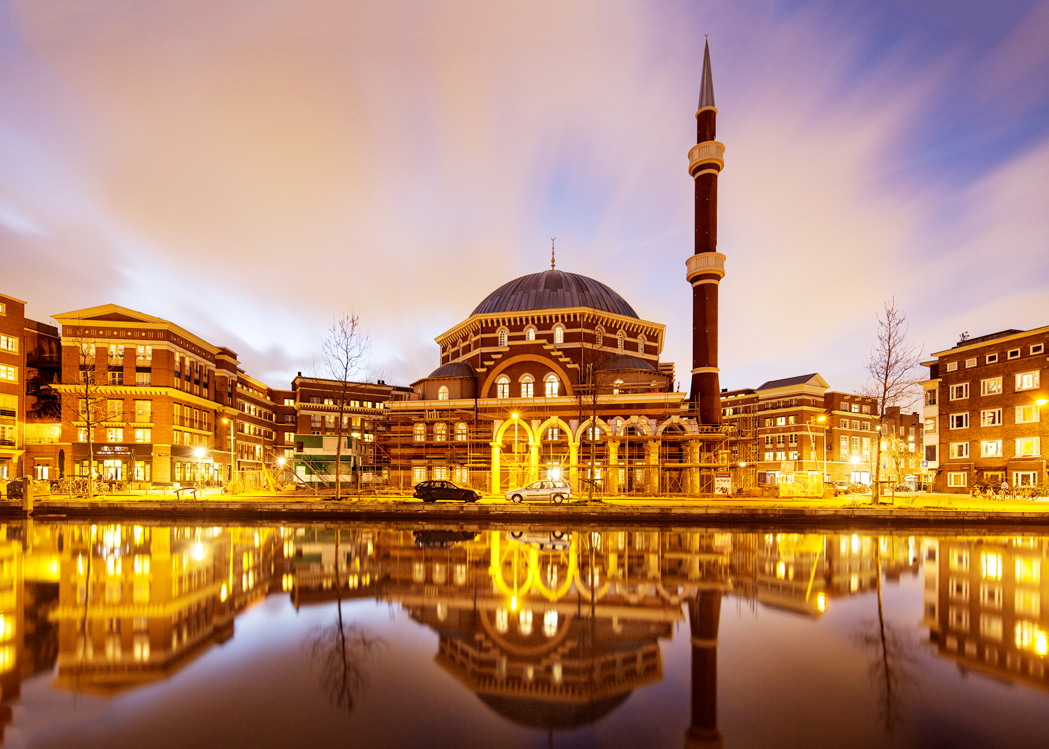 Westermoskee is located in Amsterdam, Netherlands. It is situated on the bank of the canalized river Schinkel in the Chassébuurt in De Baarsjes in the borough of Amsterdam-West. With a floor surface of 800 square meters and a capacity of 1700 people, it is the largest mosque in the Netherlands. The building was designed by French traditional architects Marc and Nada Breitman, winners of the 2018 Driehaus Prize and part of the New Classical movement.